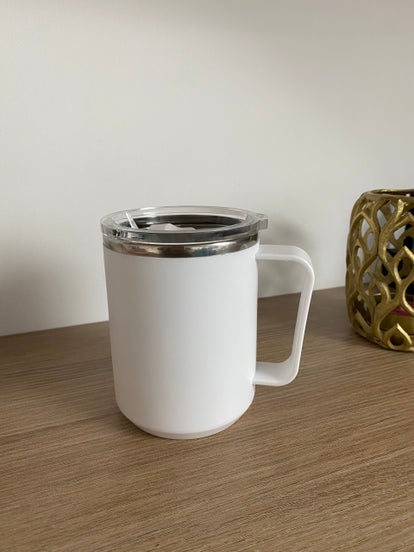Tasse à café en acier inoxydable, double paroi isolées , avec poignée et couvercle coulissant